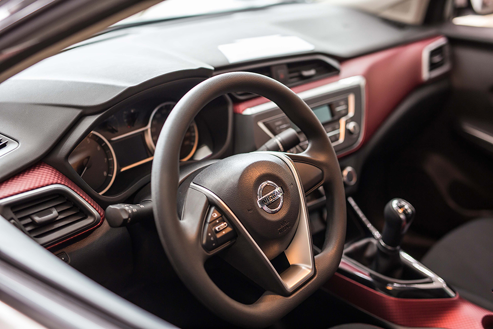 打开车门就可以感受到明显的年轻感,暗红色的纹路配搭黑色内饰显得运动感十足。内饰造型的细节,是我认为新蓝鸟打造年轻化最有成效的地方,很好把握了年轻人的品味。比如仪表台的上沿没有采用常用整片覆盖,而是增加了褶皱、折痕,并且和仪表盘外围实现了分层处理,硬朗线条更突出,和整体外观风格有了很大的呼应。