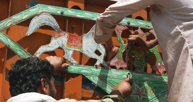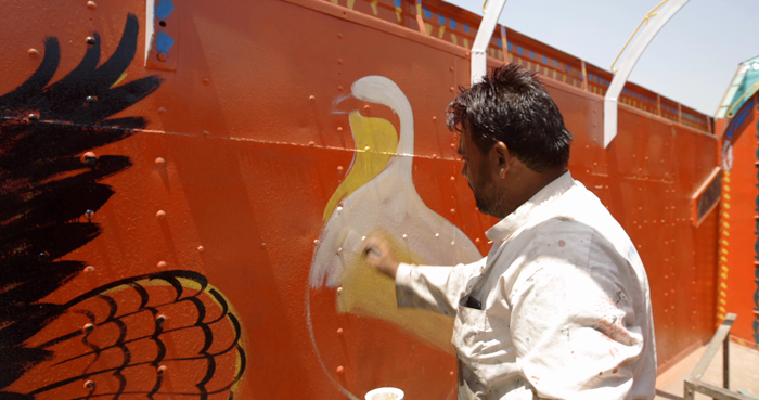这些常年奔忙的大篷车可能已经年近半百,不过,它们会在巴基斯坦各地的大篷车工厂里再一次焕发青春。