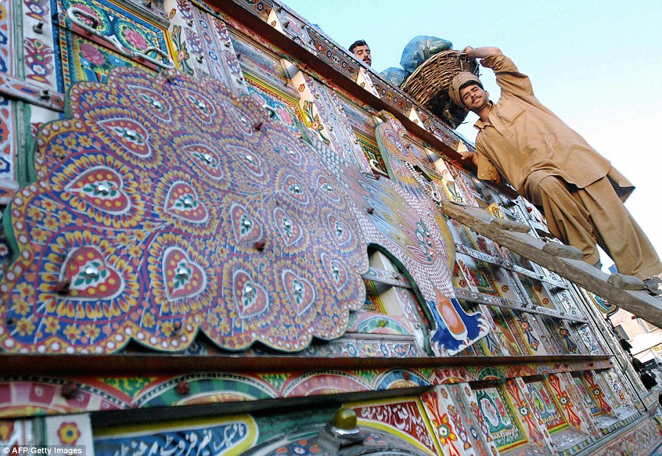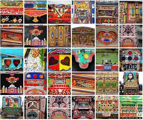 巴基斯坦装饰大篷车的习俗源自王权统治时期。工匠们会给贵族老爷的四轮马车画上五颜六色的骏马。20世纪初后,卡车公司为了招徕生意,开始装饰卡车。20世纪40年代,在白沙瓦地区,为了保护车身,司机就用金属的雕花护板来加固车身,后来慢慢演变成了流行的大篷车彩绘艺术。