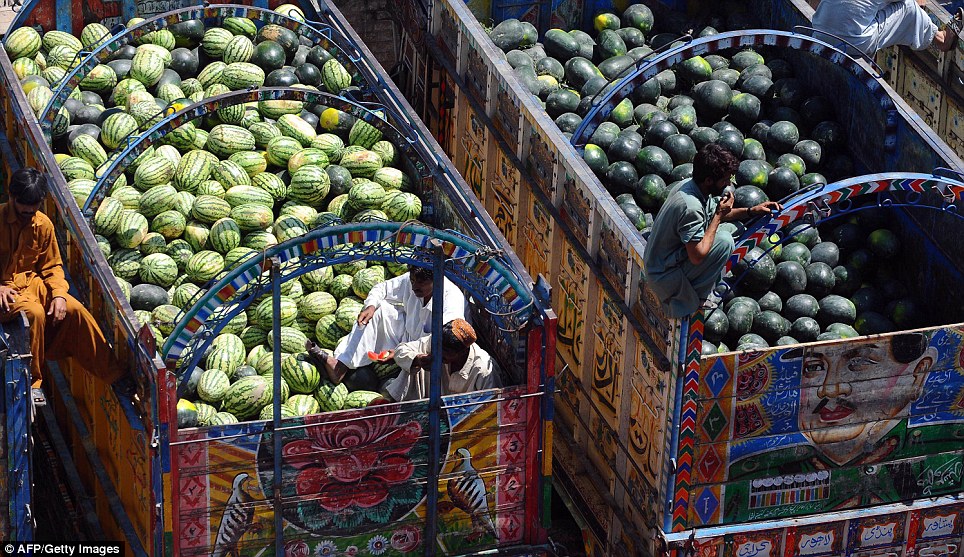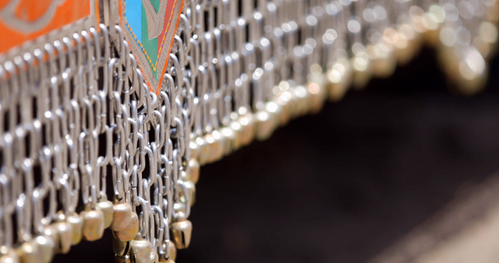 它们镶着彩珠,挂着铃铛,披覆着大红大绿的衣裳,运载着各式各样的货物,天蒙蒙亮就从一堆机动三轮车、农用拖拉机和公交车里挤出来,开往西南部的卡拉奇港、北部的喀喇昆仑公路或是其他地方。