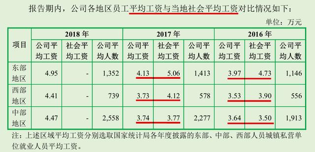 据招股书,报告期内,湘佳牧业除了2016年中部地区的员工平均工资3.64万元略高于当地的社会平均工资3.50万元之外,公司其他东、中、西部地区员工平均工资均低于当地的社会平均工资。