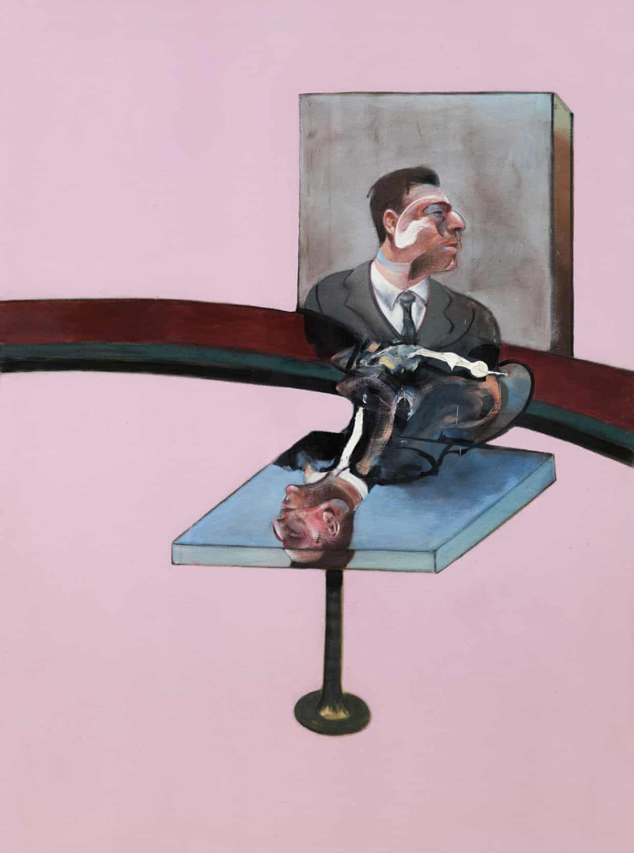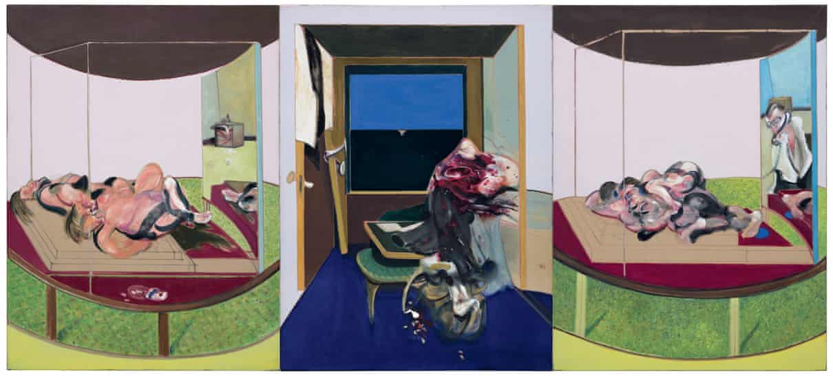 回顾展的第一批参观者不知道这个形象与培根的个人痛苦有着多么不可思议的关联。《房间里的三个人物》是这位艺术家的情人乔治·戴尔众多肖像中的一幅,它吸引了整场展出的目光。但是在10月24日,展出开幕的两天前,圣徒佩雷斯酒店的工作人员发现戴尔的尸体瘫倒在马桶上。他死于用药过量。