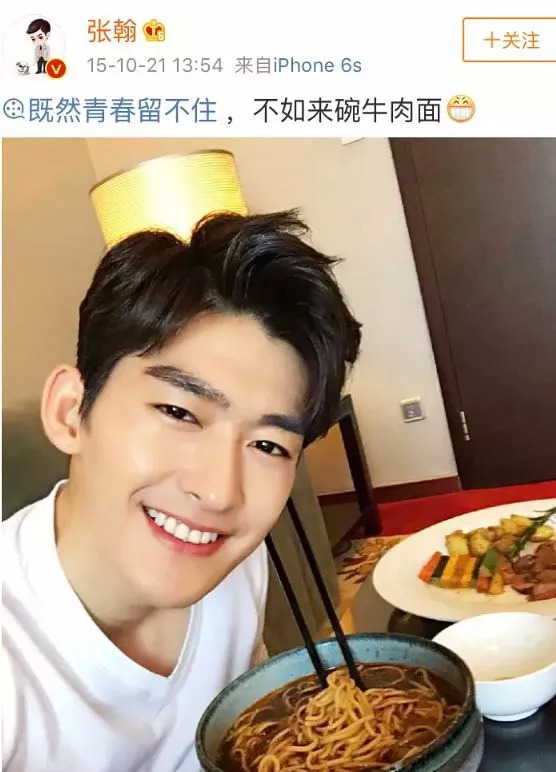 当年张翰也因为一碗牛肉面被粉丝全网追杀。