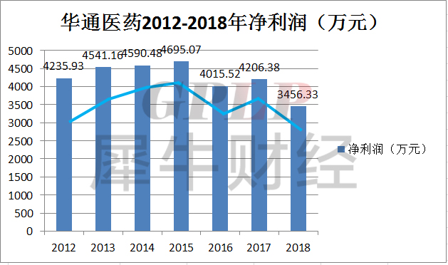 上市之后,华通医药的净利润呈现出下滑的趋势。2016-2018年,华通医药的净利润分别为4015.52万元、4206.38万元、3456.33万元;同比增长率分别为-14.47%、4.75%、-17.83%。