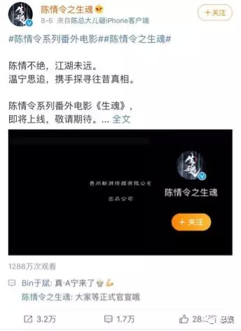 别急,花絮什么的都还只是“前菜”,让你们见识一下什么叫“陈总”(《陈情令》代称)的最强售后。目前,官方已宣布为大家安排上了番外电影《生魂》,讲的是温宁和蓝思追的故事。两人将携手寻找昔日真相,也算是“思追”的成长史。