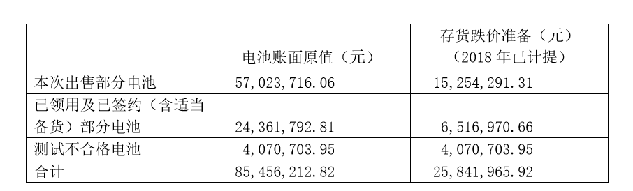 2018年以对价6163万元向沃特玛购买一批电池组,截至2018年12月31日,余额为5267万元。2019年初,中锂新材对其计提3687万元的减值准备,减值后净额1580万元。今年6月中锂新材向深圳和畅新能源科技有限公司出售全部沃特玛电池组,金额1535万元。最终此次交易将影响中锂新材2019年损益金额221万元。