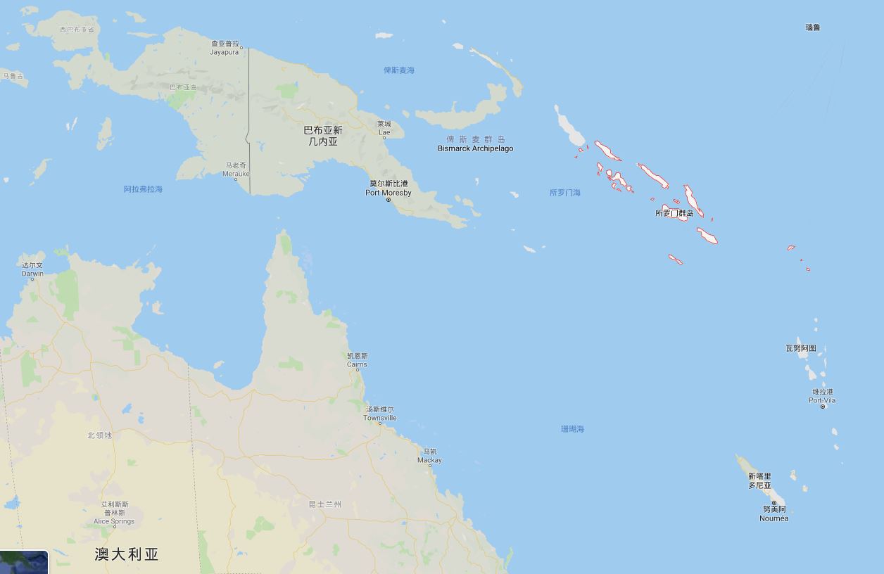 该国西南距澳大利亚1600公里,西距巴布亚新几内亚485公里,东南与瓦努阿图隔海相望。全境有大小岛屿900多个,最大的瓜达尔卡纳尔岛面积6475平方公里。境内多火山、河流。属热带雨林气候,终年炎热,无旱季。首都霍尼亚拉年均气温28℃,年均降水量3000-3500毫米。