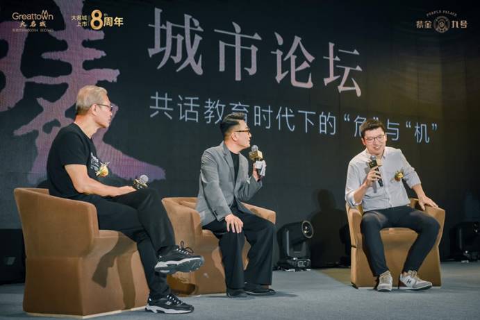 在马总精彩的演讲之后,金陵城市论坛正式启幕,文化名嘴窦文涛先生与资深教育记者戚若予先生以及大名城袁鹏总一起圆桌而坐,从当今社会的“教育焦虑症”出发,结合自己的实际情况,为当场来宾呈现了一场教育盛宴,让地产与教育碰撞出精彩的火花。大咖们以紫金九号周边浓厚的教育氛围举例,侃侃而谈好的教育环境对孩子自由成长的重要性。