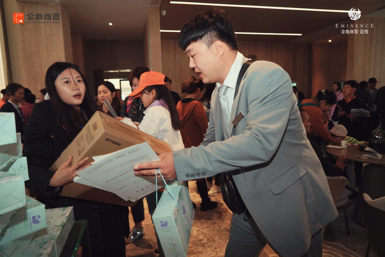 除此之外,现场还有针对老业主的送波士顿大龙虾活动。各种精美伴手礼、惊喜礼,让金地商置·昆悦现场人气爆棚,欢笑不断。