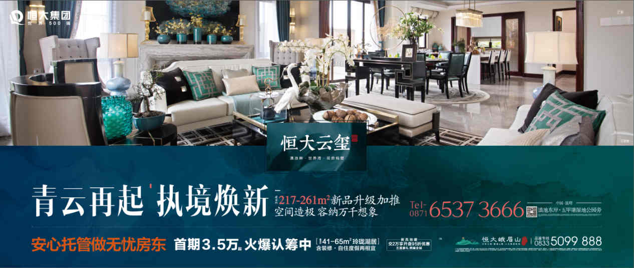 滇池畔臻熟墅区,大境天成,坐拥城市璀璨心核,拥揽极致生态之景。恒大云玺,建筑面积约217-261㎡城市湿地纯墅新品加推在即,建筑面积约40-327㎡滇池会展金阶现铺,火热销售中。全员营销月,限时享95折,恒房通推荐成交即享98折,按时签约享98折,到访还可享精美伴手礼和养身豪礼!详情:0871-65373666