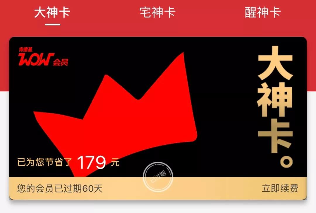事实上,在2018年11月,肯德基就开始了一系列“月卡”的尝试,主要有“大神卡”“宅神卡”“醒神卡”,对应不同的优惠政策和消费场景。