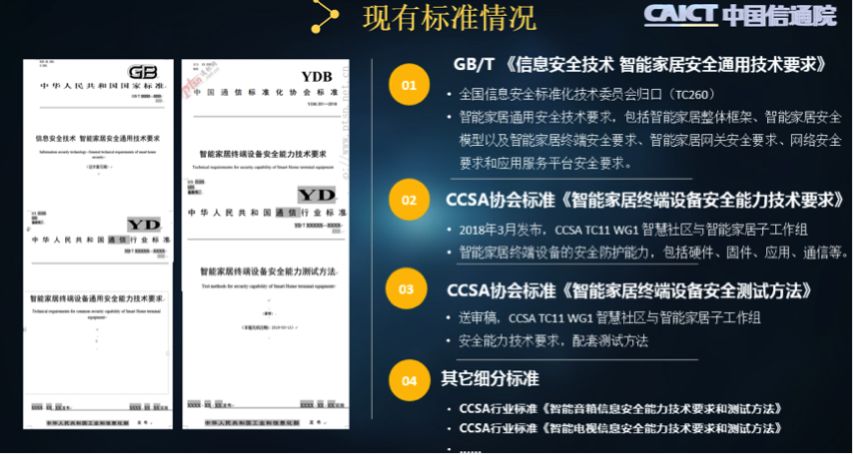 智能家居领域的现有标准。来源:中国泰尔实验室
