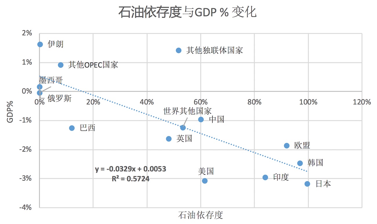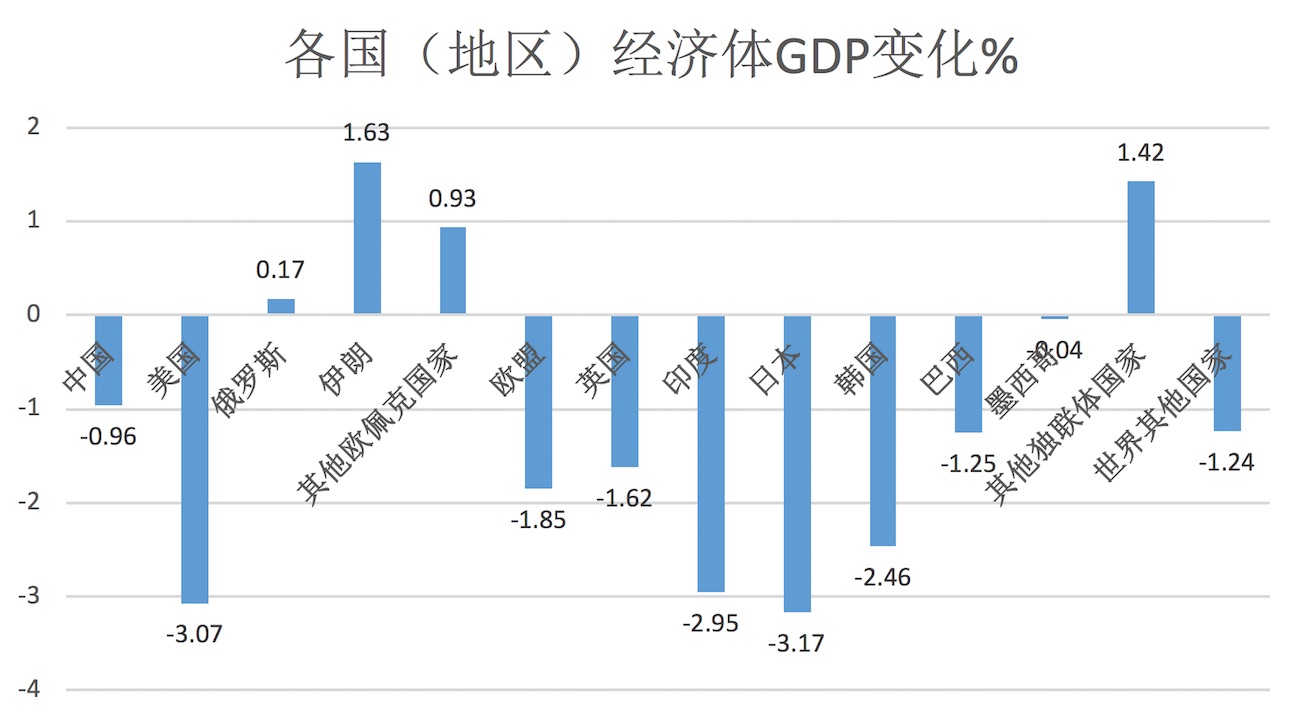 图2:沙特减产后各国(地区)经济体GDP变化%