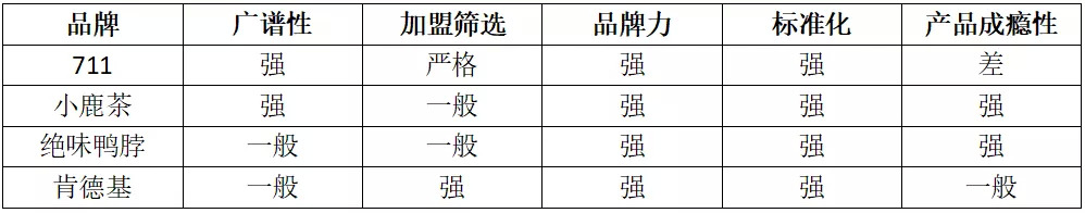 我最后用一张图表模式来对比下,我刚才提到这些品牌为什么可以很好地做好加盟: