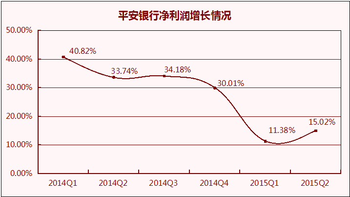 15.02%的净利润增速较2014年全年的30.01%的增速降幅较大,且看似出现增利不及增收的情况,但原因在于其资产减值损失计提的增加,拨备计提同比大幅增长128.64%。且净利润增速已优于其一季度的11.38%。