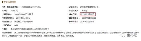 芝麻信用成立于2015年1月8日(截图来自国家企业信用信息公示系统,金科社截图)