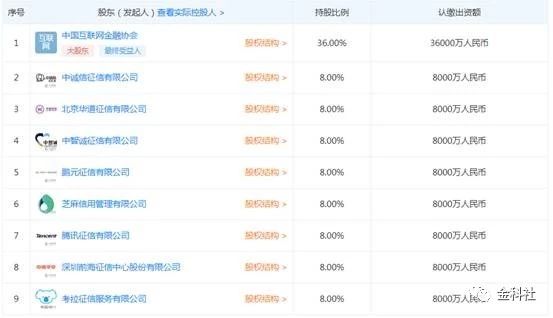 百行征信股权结构图(金科社截图)