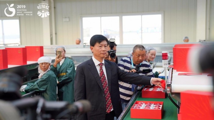 随后,昭通市委书记杨亚林启动“昭阳红”第一箱苹果的正式下线。
