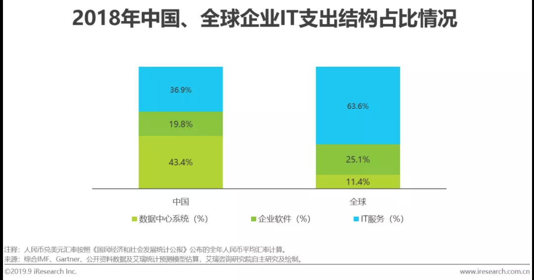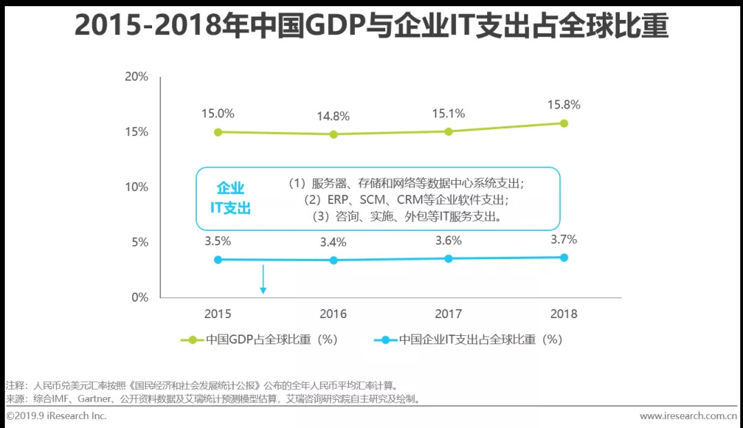 站在全球视角下,中国企业信息化投入与经济发展水平关系不平衡。1)2018年,中国GDP占全球的比例达到15.8%,但中国企业的IT支出占比仅为3.7%,可以明显看到,在过去以粗放式增长为主导的经济模式下,中国经济总量的快速增长并没有反应到企业的信息化投入当中。2)同时,通过2018年中国和全球企业IT支出结构看到,企业软件和IT服务支出均低于全球水平,这说明营销云厂商面临的市场环境中依然有大量企业的信息化停留在浅层水平,很多企业软件应用也并不广泛,营销云厂商即要在业务数字化尚未完全普及的情况下向数字化转型阶段过度,这无疑为供给侧和需求侧带来了挑战。