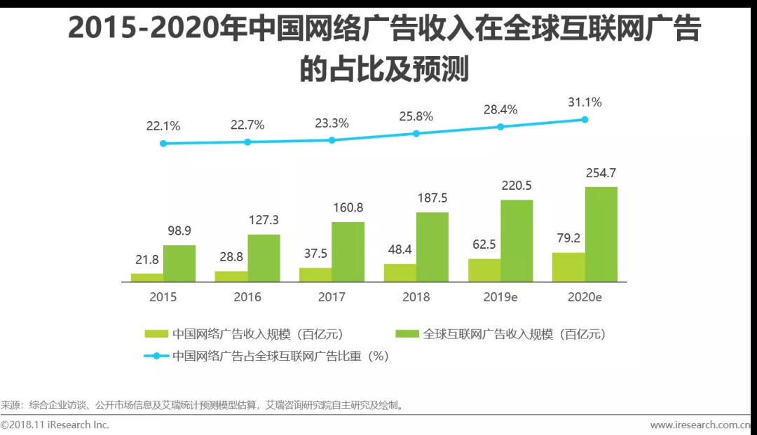 2018年中国SaaS市场规模占应用软件的比例由2015年的8.3%上升到13.3%,软件SaaS化趋势不可逆转,预计2020年该比例将进一步增长至19.8%。同时,2018年中国网络广告市场规模达到4844亿元,预计在2020年市场规模将达到近8000亿,从绝对值来看,中国网络广告产业的生命力依然旺盛。此外,从广告主的调研中可以明显看见的趋势是网络广告市场增长的动力,正在由原来以广告投放为核心的手段向全渠道营销触点的运营方式扩散,将分散的时刻转化为一种有凝聚力的体验并进行管理,已成为广告主重要的诉求。