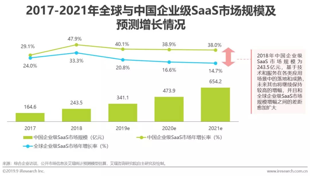 企业级SaaS高速发展,预计未来三年复合增长率近40%
