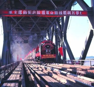 图/1968年10月1日,第一列火车通过南京长江大桥。