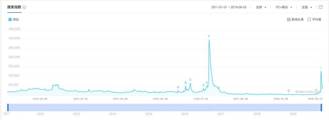 百度指数显示,近7年来,《诛仙》的搜索指数由于电视剧《青云志》与电影《诛仙I》而经历过两次高峰值。