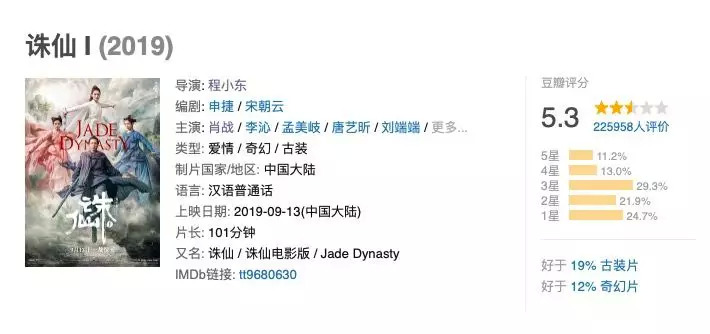 给新丽传媒带来的影响同样如此。《诛仙I》以其自身的IP改编效果、演员阵容等,置换出3.78亿的票房,确实是意外之喜。但在路人看来,豆瓣评分5.3分,口碑滑铁卢,原著粉已经从《青云志》开始就出离愤怒,对于《诛仙I》几乎有PTSD反应。