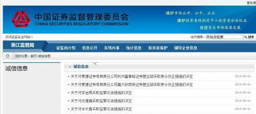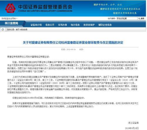 9月24日,浙江证监局一次性挂出5张针对爱建证券的行政监管措施。由于在资管产品销售中存在问题,爱建证券两家营业部报被采取责令改正的措施,三名相关负责人也被要求前往证监局接受监管谈话。