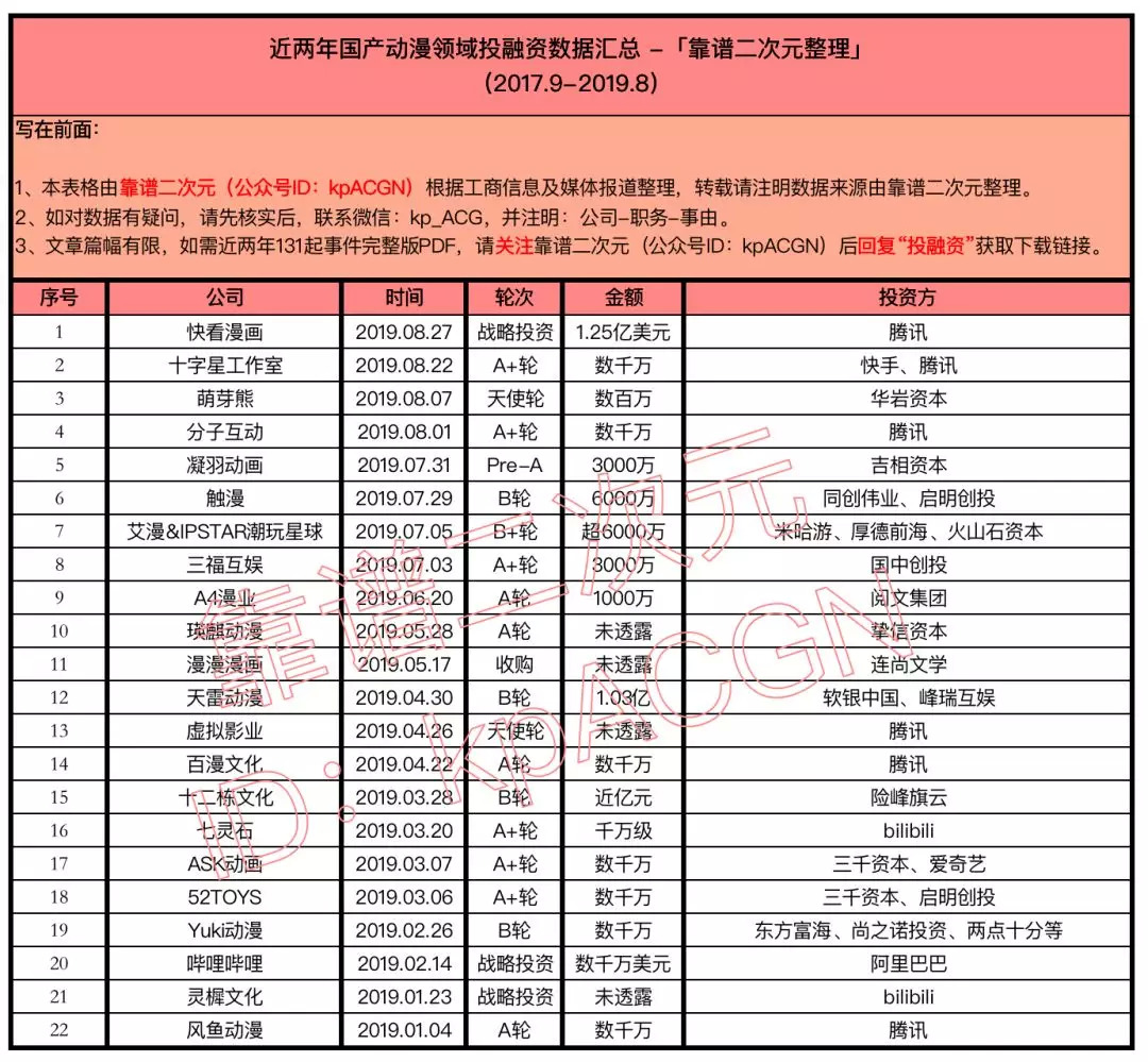 不过,有几家内容产出稳定的头部动漫公司已经顺利推进融资,但由于轮次靠后股权结构复杂,至今没有完全close下一轮,也就没有高调官宣和工商变更记录。