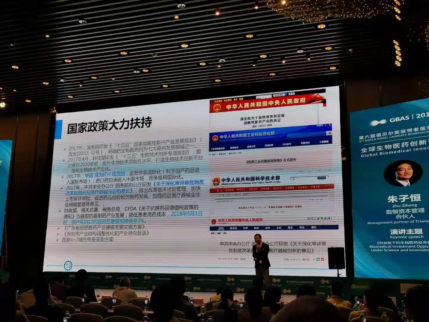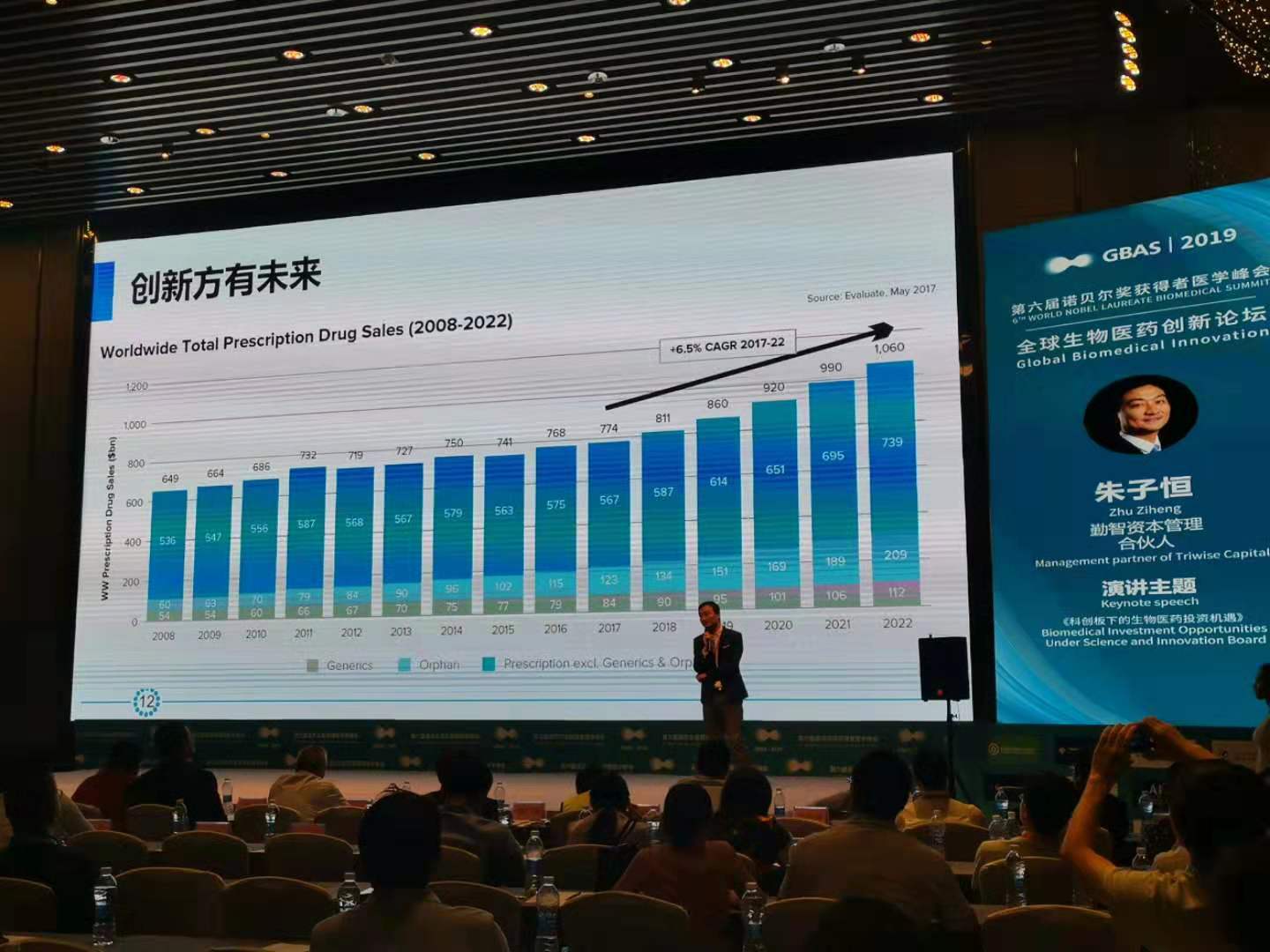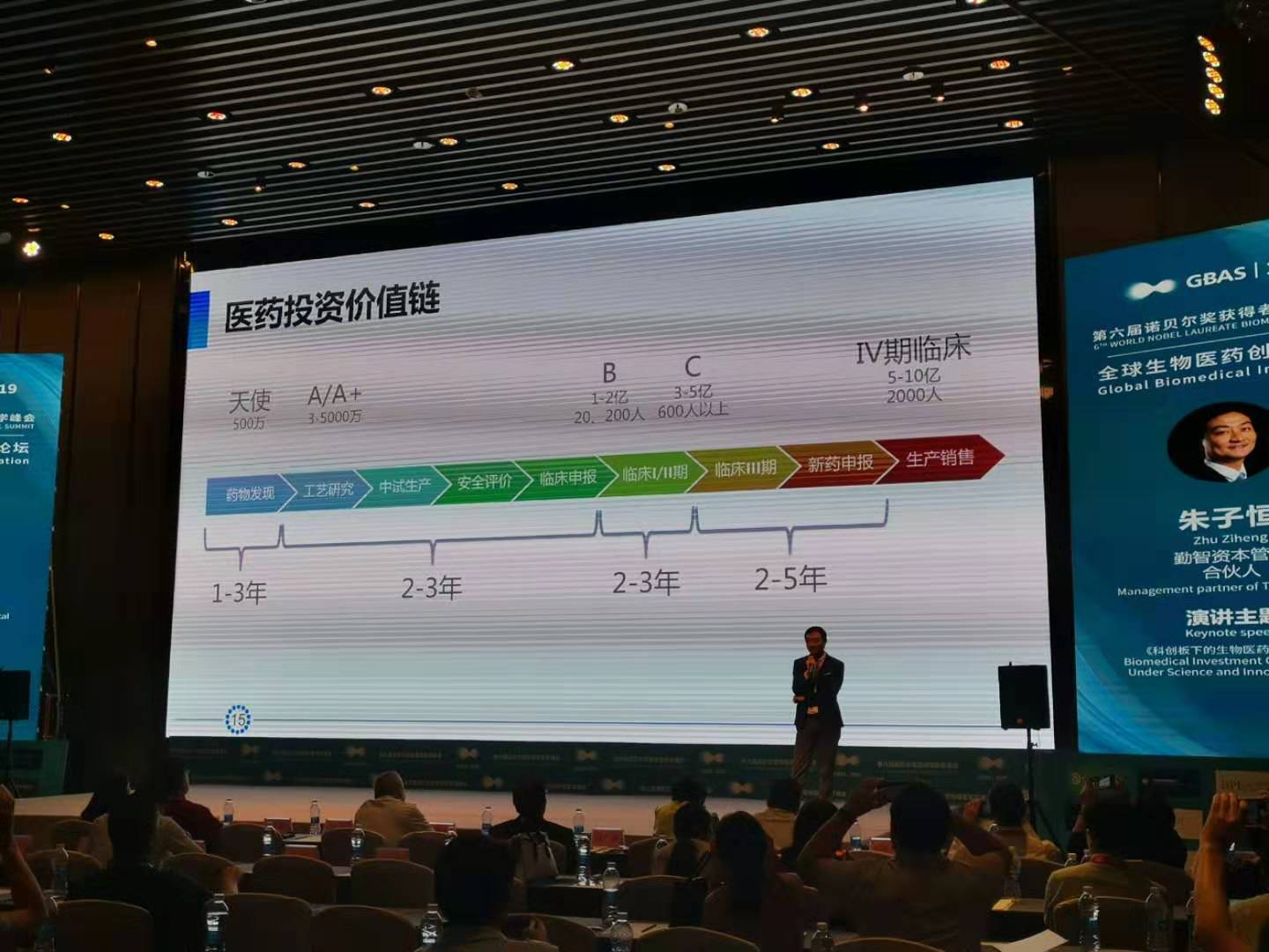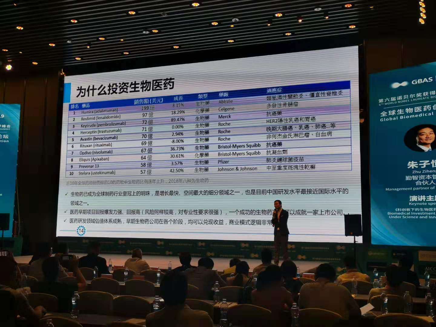 在“GBAS 2019第六届诺贝尔奖获得者医学峰会”上,勤智资本管理合伙人朱子恒分享了《科创板下的生物医药投资机遇》的主题演讲。
