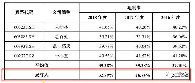 据招股书,报告期内合纵药易购零售业务的毛利率分别为26.17%、26.74%、32.79%,而同期,同行业上市公司毛利率平均值分别为39.30%、39.28%、39.28%,尽管合纵药易购零售业务的毛利率呈上升趋势,但仍明显低于同行业上市公司平均值。