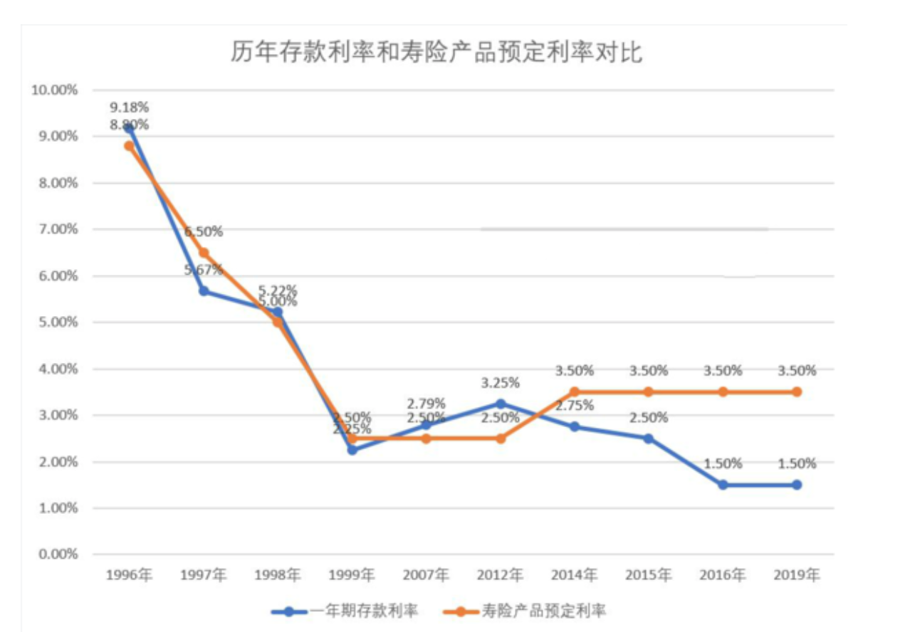 1998年之前销售的年金产品平均大概按6%-8.8%的预定利率,终身保证给付生存金。因此在利率突降后保险公司就主动紧急停售了这些高预定利率的产品。到了1999年保监会也一刀切要求所有保险公司报备的产品预定利率不可以超过2.5%。