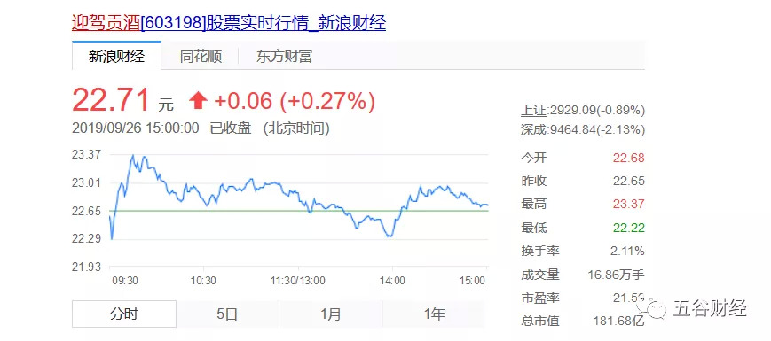 截止9月26日收盘,迎驾贡酒的股价为22.71元/股,相较于一个月之前18元/股左右,累计涨幅在20%左右。