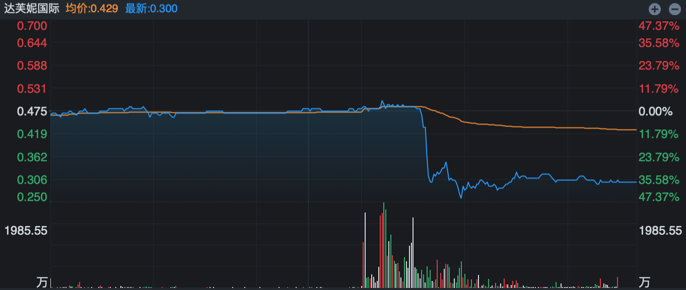 达芙妮国际(0210.HK)股价9月27日午盘突然闪崩,最大跌幅超过45%。