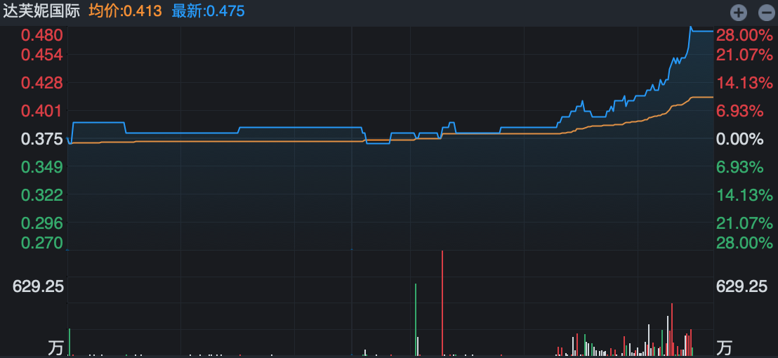 9月27日早盘,达芙妮国际股价一反昨日高涨情绪,呈现横盘震荡走势。午后14时05分许,其股价突然闪崩,最大跌幅达到45.26%。截至收盘,达芙妮报收0.3港元/股,跌36.84%。