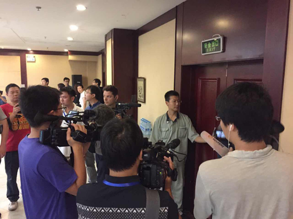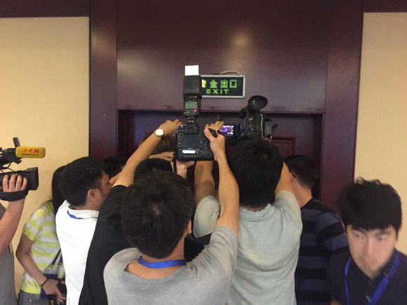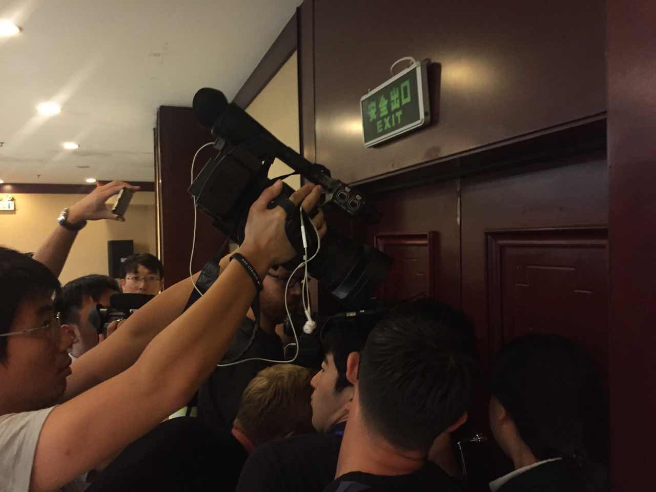 第四场发布会已经结束,但记者仍被堵在现场无法出门。