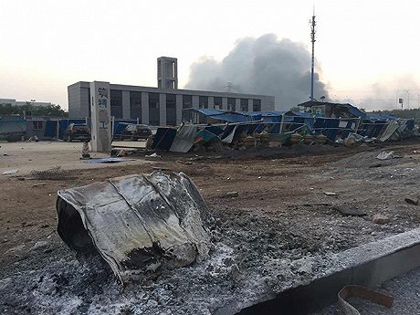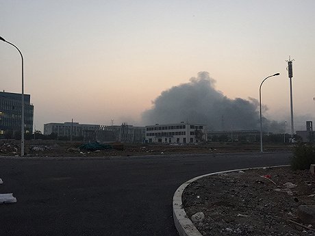10:58【京华时报:消防北侧集结点已西移 事故现场再次爆炸】上午10点,现场消防北侧集结点西移300米,让出十字路口。随后,约20辆满载沙子的大货车出现在火场北侧,并有多辆铲车驶入火场。据一名大货车司机介绍,他们奉命赶到,“说是要拉沙子过来灭火。”刚刚现场再次发生爆炸。