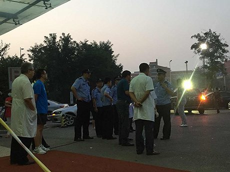 05:23【事故现场】界面新闻记者到达泰达医院后,闻到刺激性气味,稍后感到胸闷头晕。在泰达医院急诊部门口,不时有伤员前来就诊。路边放着四台担架,旁边围站着医护人员、警察、武警及志愿者,也有媒体人员。界面新闻记者看到天津新区政府工作人员前来探查。据志愿者张先生介绍,在凌晨3点左右,自发前来救助的志愿者达上百人,由于未有序协调,一度引发拥堵混乱情况,经警卫人员调整后,目前急诊科门口,志愿者为二十人左右。