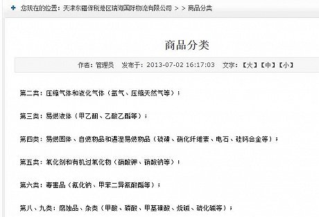 01:30【初步确认】目前基本确认事故由位于天津港跃进路中段的瑞海国际物流有限公司的危险品货柜爆炸引发。据公开信息,天津东疆保税港区瑞海国际物流有限公司,成立于2011年,注册于天津东疆保税港区,注册资金伍仟万元人民币,是天津口岸危险品货物集装箱业务的大型中转、集散中心,是天津海事局指定危险货物监装场站和天津交委港口危险货物作业许可单位。