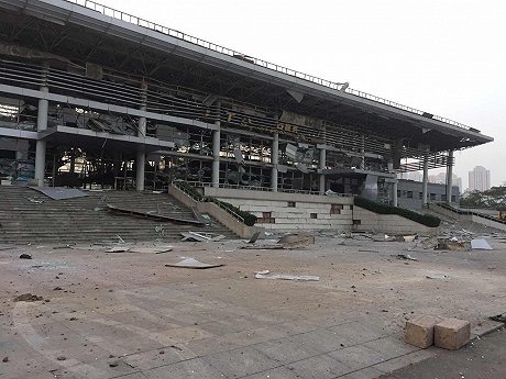 05:45【轻轨站严重损坏】事发地旁边的轻轨站也被严重破坏,楼体坍塌大半。轻轨站也广场上停着大量被震毁的公交车。