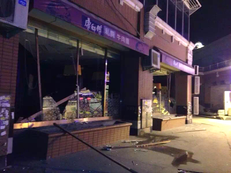05:18【事故现场】界面新闻记者看到,事发地一公里内的居民楼,楼体有损,玻璃窗大部分被毁坏,玻璃溅到街道上。楼中没有居民身影,一些居民撤到较远处的马路上休息。