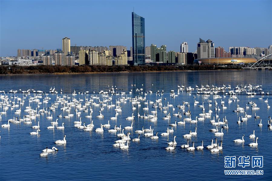 白天鹅在三门峡黄河湿地栖息(2018年2月2日摄)。 新华社记者 朱祥 摄