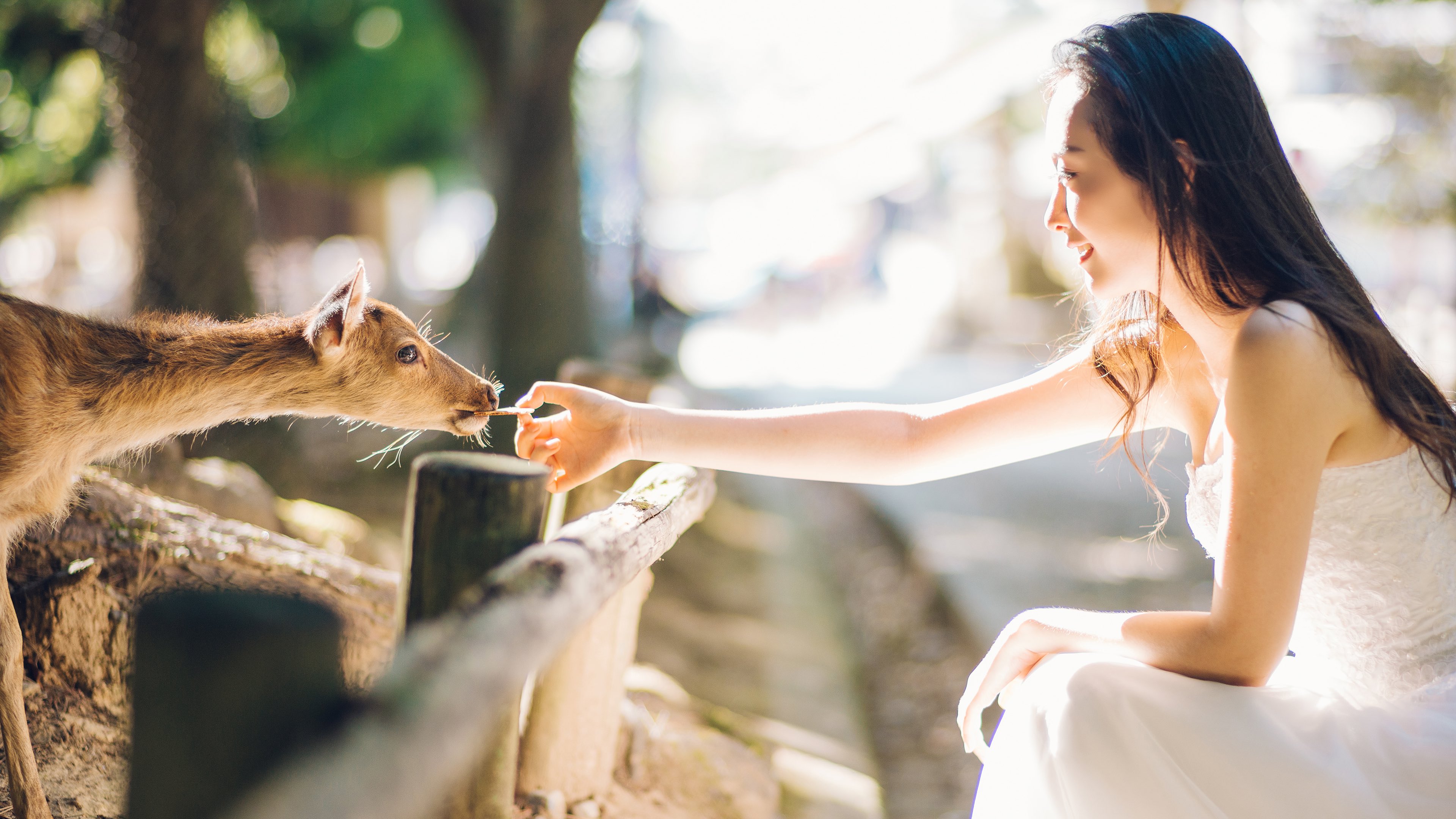 他得意的一张作品是在四五年前,新娘蹲下来喂小鹿,当时的光线正好透过白纱照射下来,小鹿也乖巧地伸出头,他按下快门抓住了这个瞬间。
