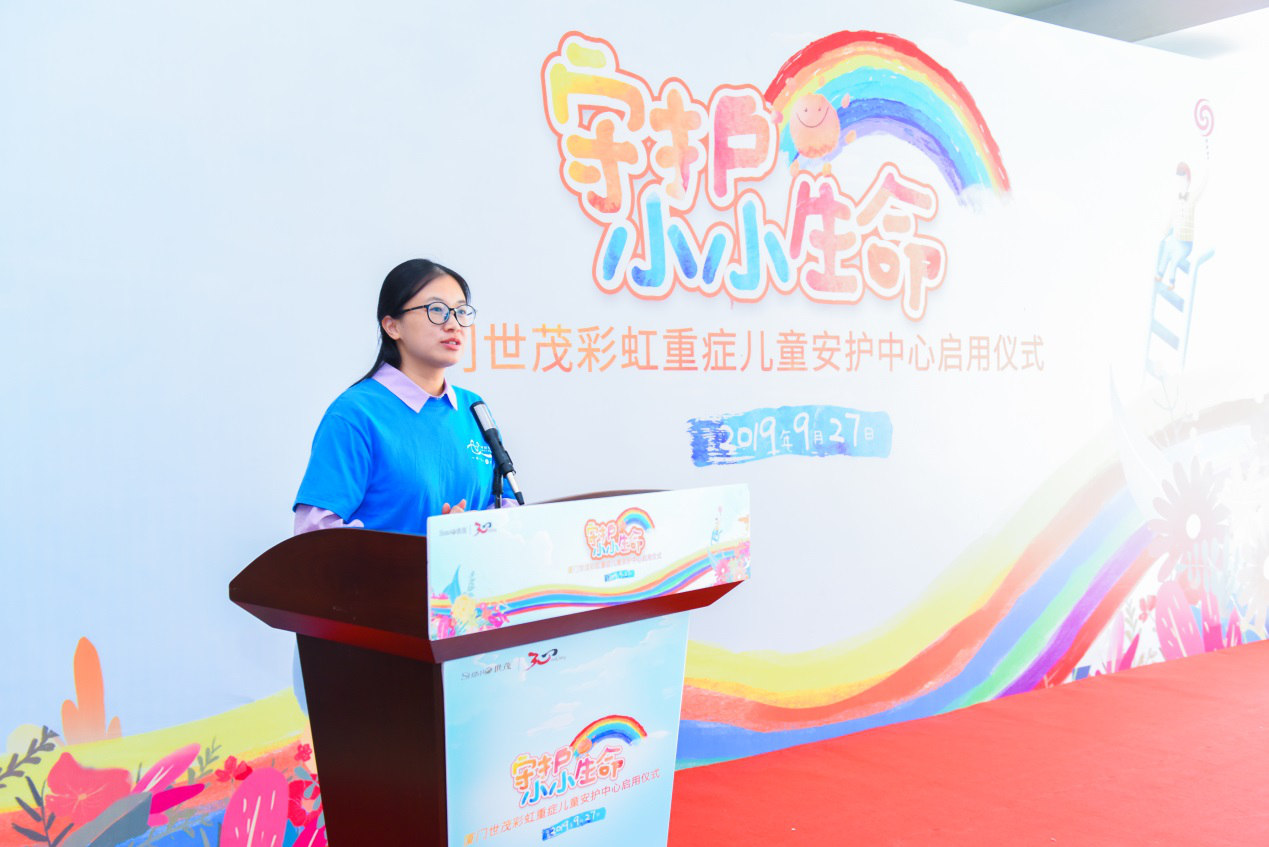 (世茂彩虹重症儿童安护中心主任黄芳致辞)