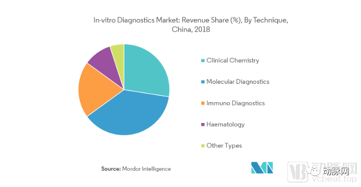 具体到细分领域增长趋势中,在国内,体外诊断细分领域主要包括免疫、生化和分子诊断,其中生化诊断和免疫诊断是市场主体,合计占有60%以上的份额。