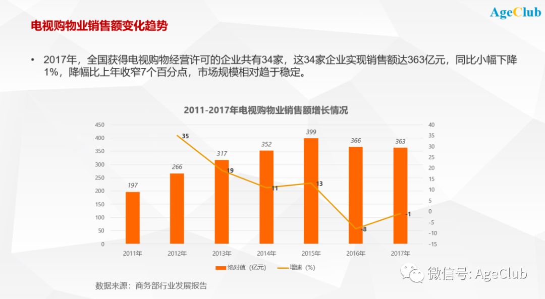2、电视购物行业在在2015年达到顶点,之后进入负增长的发展状态,整个行业正在经历艰难转型;