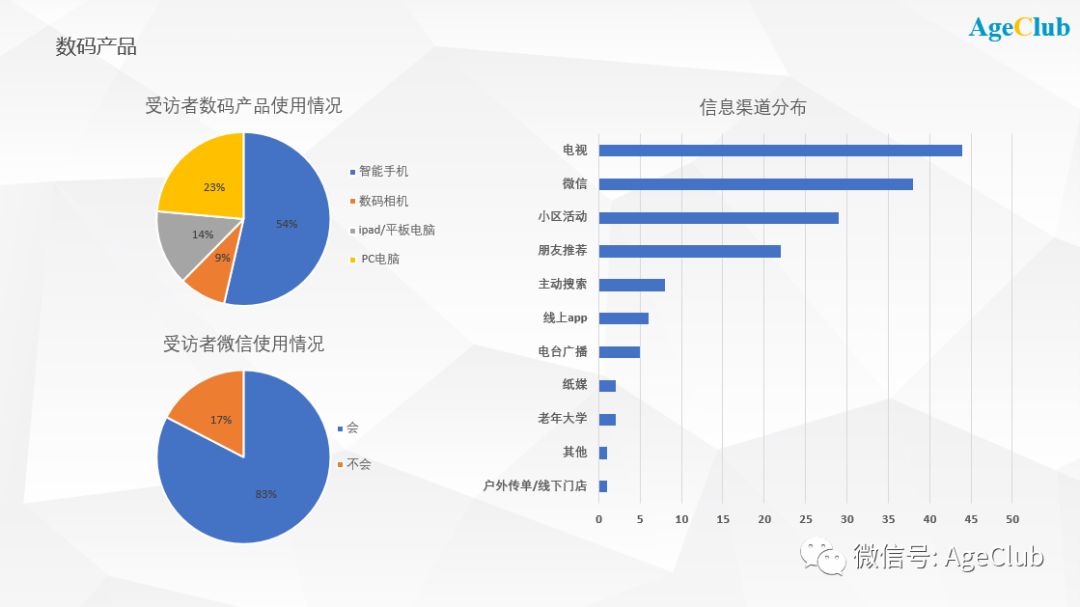 他们不擅长使用新媒体渠道去获取信息,也不愿意用复杂并且风险性较高的线上支付工具,并且他们对品牌辨识能力较低。