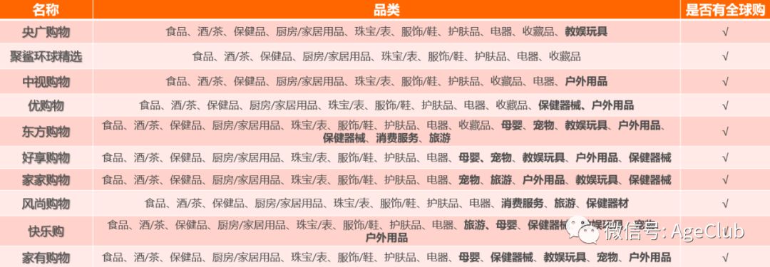 Ageclub对全国覆盖的体量较大的电视购物品类进行归纳分析,部分电视购物除了传统的商品品牌外,还对品类进行了拓展升级,主要有以下几个明显的品类拓展特征。