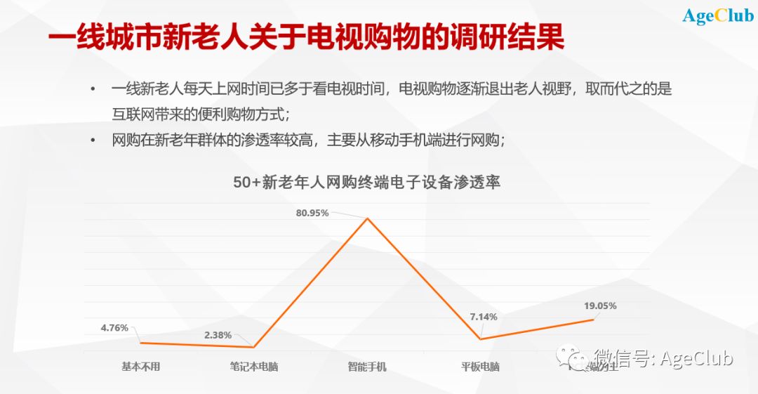Ageclub对中老年人进行线下访谈过程中也发现,长三角某三线城市65岁以上老人中,电视购物仍然是很重要的消费渠道。